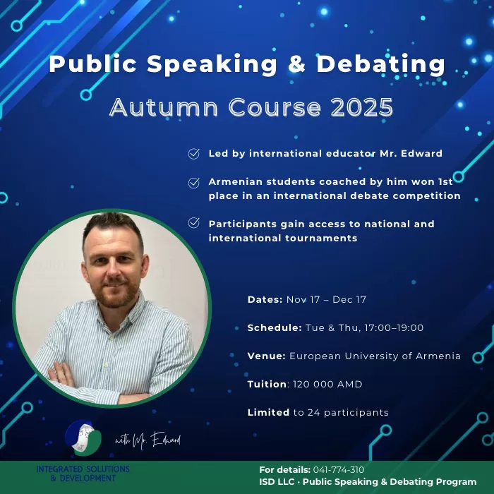 Upcoming Event։ Public Speaking & Debate Autumn Course 2025